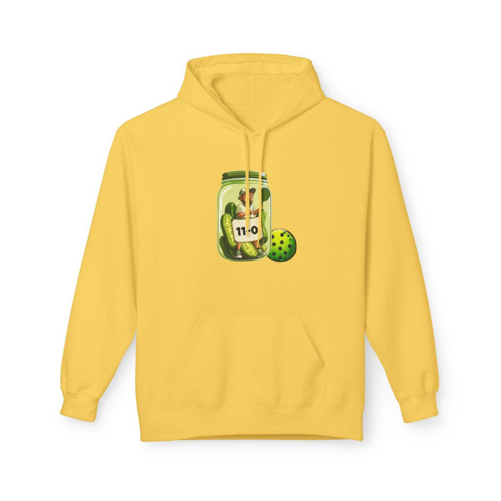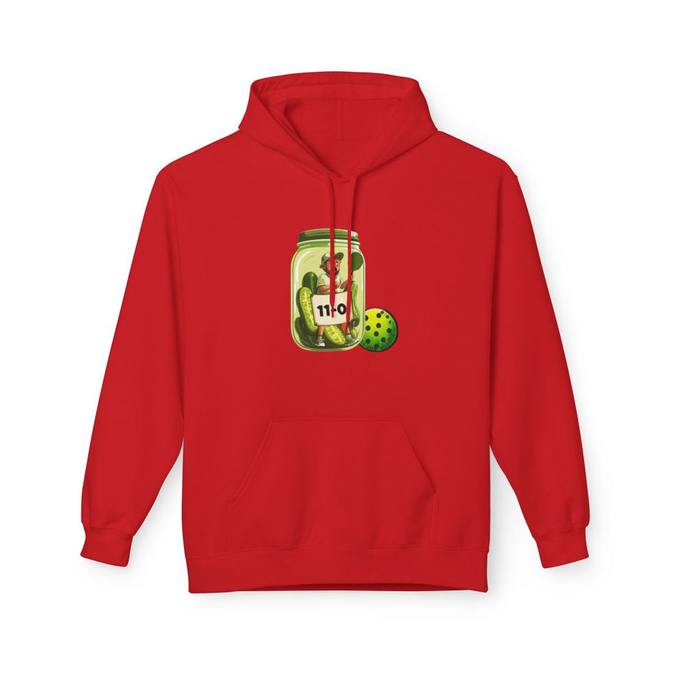 Got beat 11-0? Just want to crawl into a jar and close the lid? A cozy, comfortable way to show your pickleball passion. Add to your pickleball wardrobe with our custom fleece hoodies, expertly crafted from an 80% ring-spun cotton and 20% polyester blend, with a 100% cotton face for a soft, premium feel (Dark Heather is 50/50 cotton/polyester, Sport Grey is 75/25 cotton/polyester). This hoodie features a 2-piece, color-matched jersey fabric-lined hood, a stylish dropped shoulder, and a convenient pouch pocket. Emphasizing sustainability, it meets the OEKO-TEX Standard 100 for eco-friendly production and is manufactured in a WRAP-certified facility that partners with the Fair Labor Association, ensuring ethical and socially responsible practices.